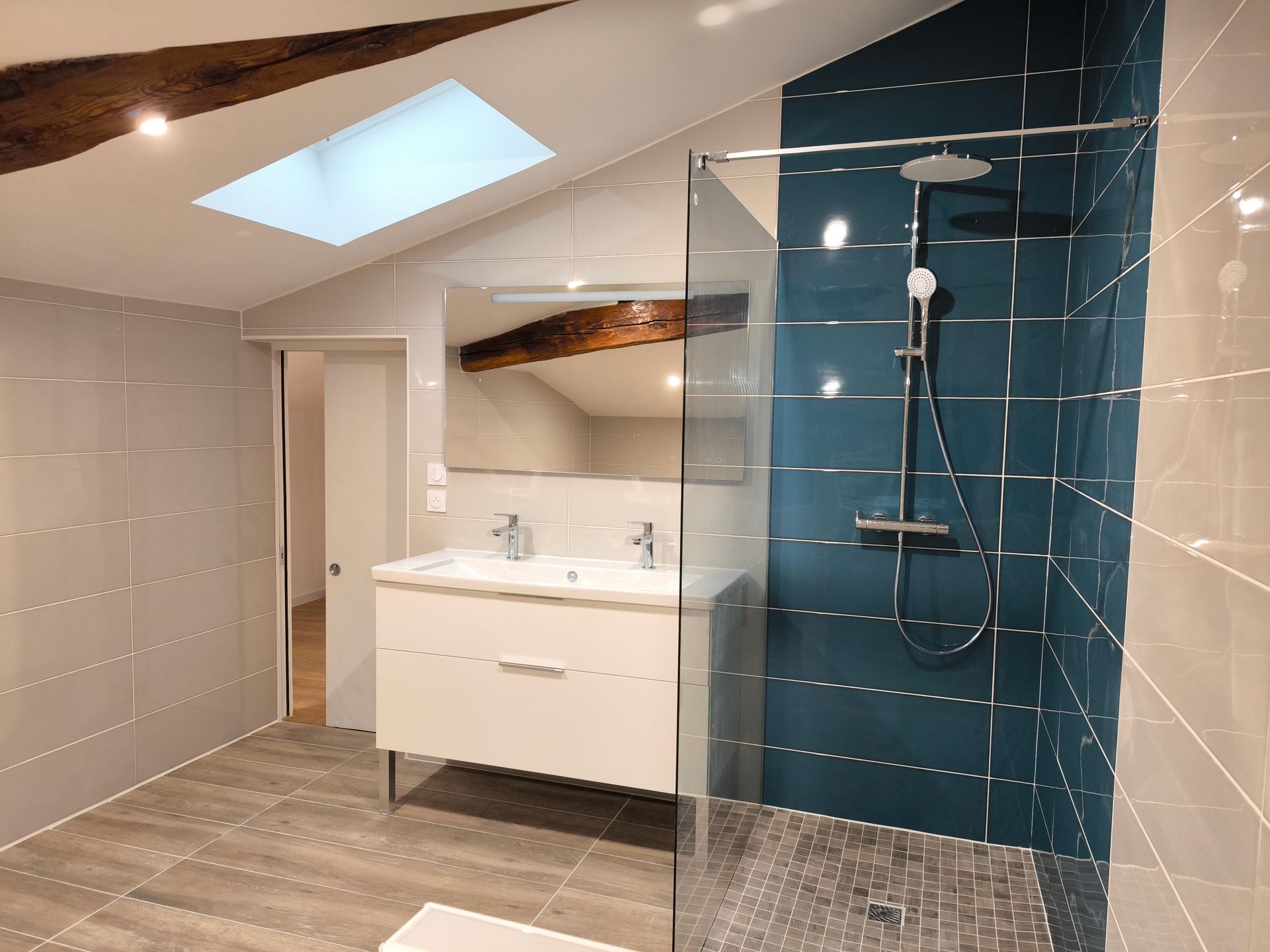 Création et aménagement des combles sous rampant d'une maison type Landaise et avec réalisation de deux chambres, un grenier et une salle de bain complète.